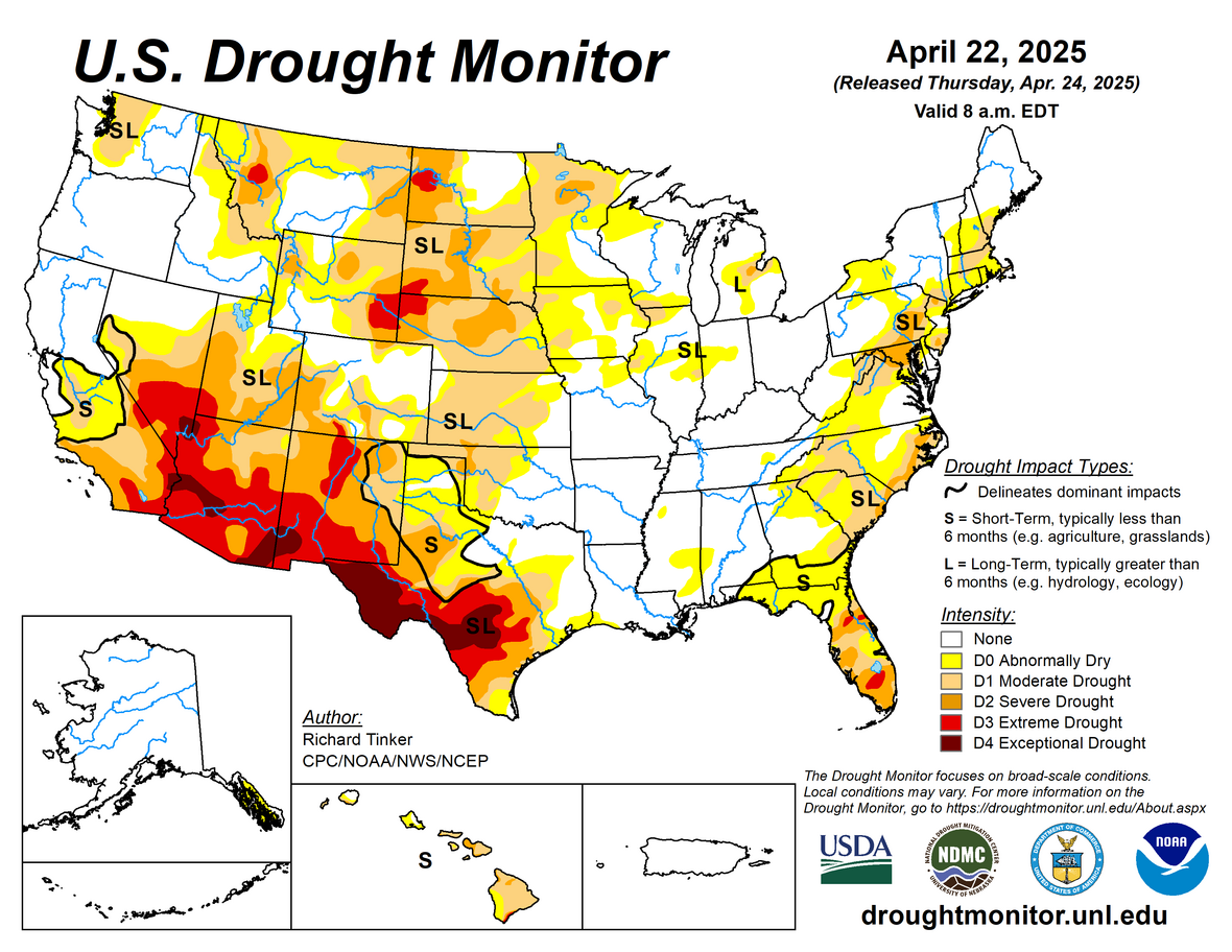 • Severe drought conditions in many areas of the southeast and southwest