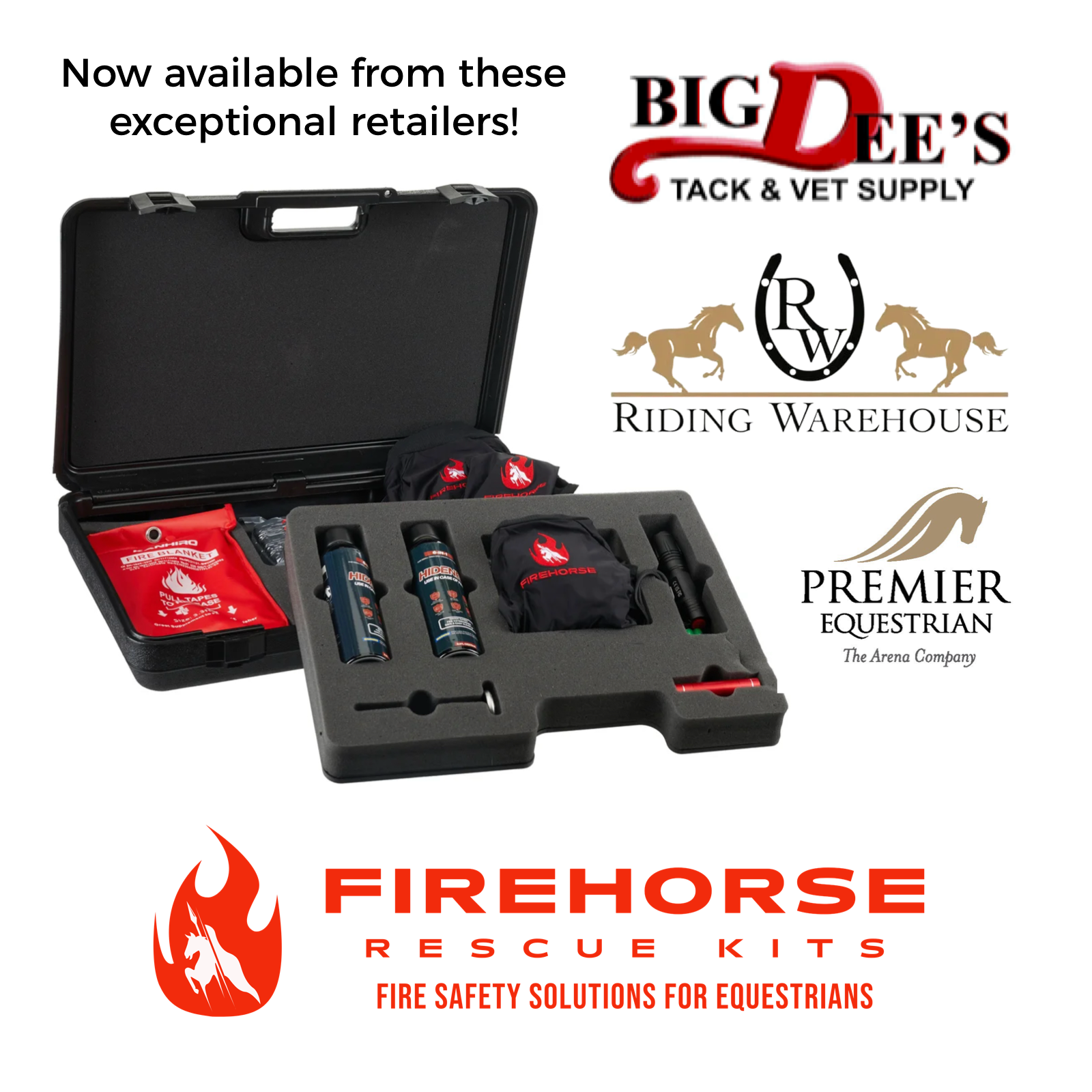 Wellington, FL (August 18, 2025) - FireHorse Rescue's innovative and one-of-a-kind equine fire safety products are now available from three of the countries top suppliers of equestrian tack, equipment, and barn supplies. Big Dee's Tack and Riding Warehouse recently added the innovative fire kits and equine blindfolds to their stock, while Premier Equestrian was the first to began selling them last summer. Launched in mid-2024, FireHorse's line continues to be a standout option for barn fire safety and horse evacuation, drawing both national and international attention as well as partnerships with equestrian facilities from California to Florida.