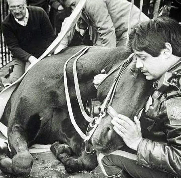 Frank was inside the station when someone ran in, breathless, shouting that his horse had fallen. His heart dropped. He feared the worst — a broken leg would mean losing his partner of three years.